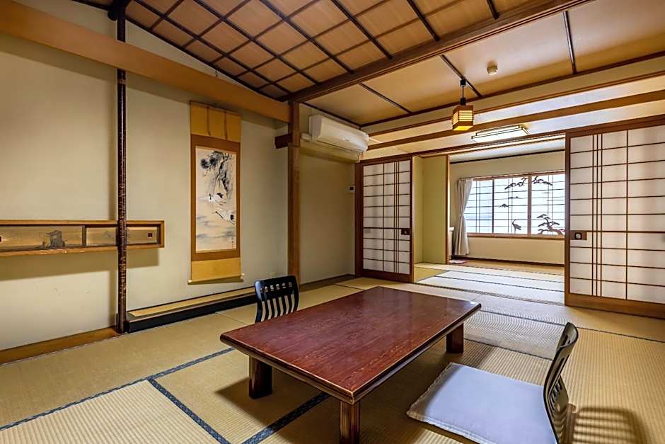 This room is fitted with tatami (woven-straw) flooring and features Japanese futon bedding. Bathroom facilities are shared.