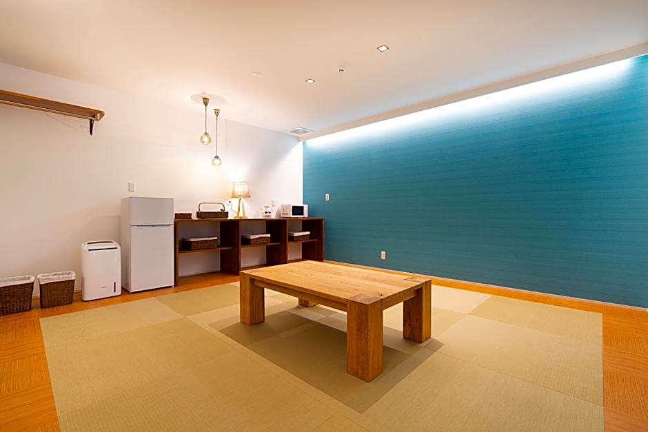 The quadruple room offers air conditioning, tatami, a terrace with mountain views as well as a private bathroom featuring a walk-in shower. The unit offers 4 futons.