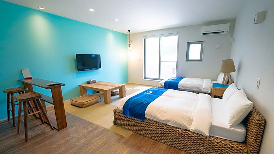 The quadruple room offers air conditioning, tatami, a terrace with sea views as well as a private bathroom boasting a walk-in shower. The unit has 2 beds and 2 futons.