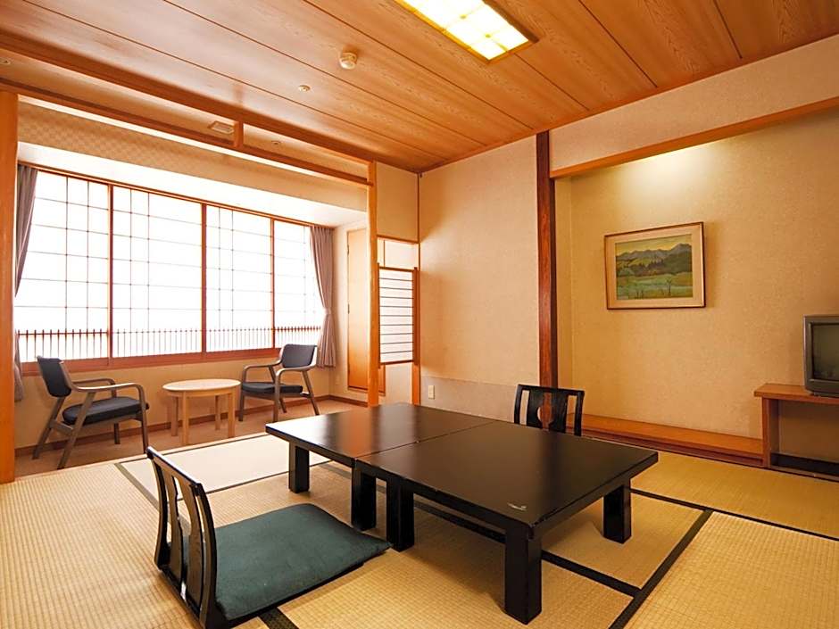 The quadruple room offers air conditioning, tatami, as well as a private bathroom boasting a bath and a shower. The quadruple room features a seating area, a safe deposit box, an electric kettle, yukata and a flat-screen TV. The unit has 4 futons.