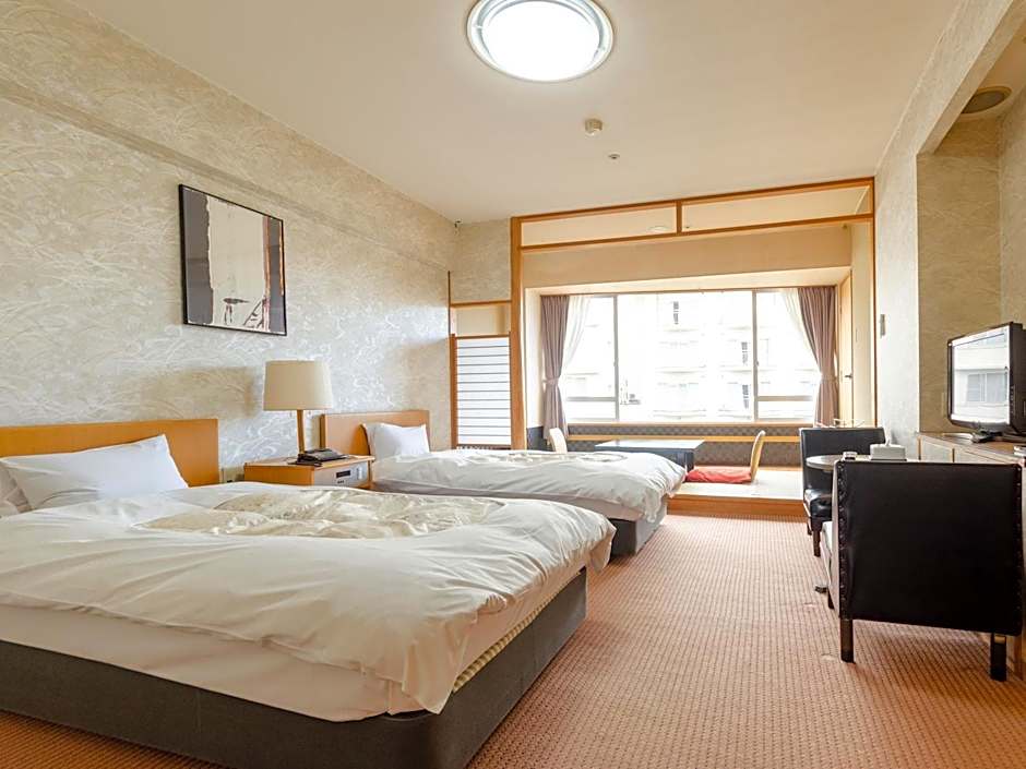 Providing free toiletries, this twin room includes a private bathroom with a bath, a shower and a hairdryer. This twin room is air-conditioned and features a seating area with a flat-screen TV, a safe deposit box, an electric kettle, a carpeted floor, as well as yukata. The unit offers 2 beds.