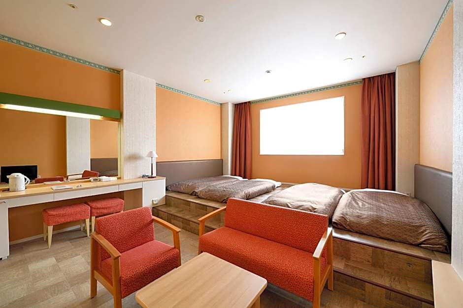 The spacious family room provides air conditioning, a safe deposit box, as well as a private bathroom featuring a shower and a bidet. The unit offers 5 futons.