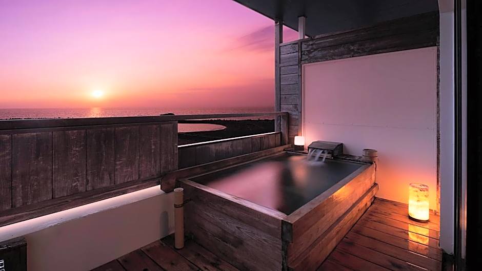 This room features a modern Japanese-style design and scenic views of the ocean. There is an open-air bath, Japanese-style veranda, private bathroom and toilet. Meals are served in the guest room.
