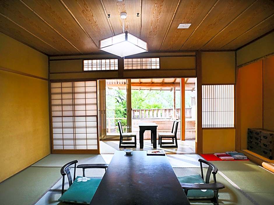 This family room offers a private open-air bath. The family room includes a private bathroom, well-fitted with a bath, a shower, a bidet, a hairdryer and slippers. The air-conditioned family room provides a flat-screen TV, tatami, yukata and heating. The unit offers 5 futons.