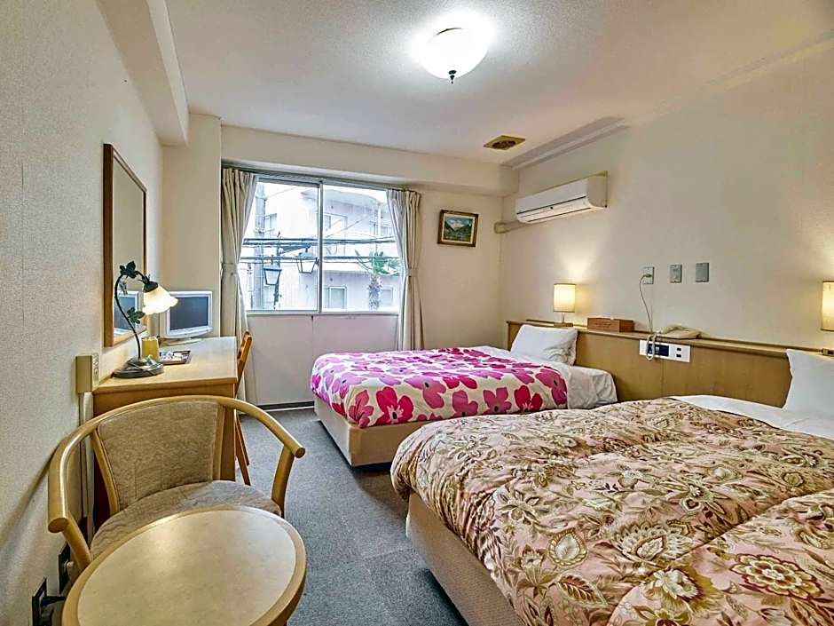 Providing free toiletries, this twin room includes a private bathroom with a bath, a shower and a hairdryer. The twin room provides air conditioning, a tea and coffee maker, a carpeted floor, yukata and a flat-screen TV. The unit offers 2 beds.