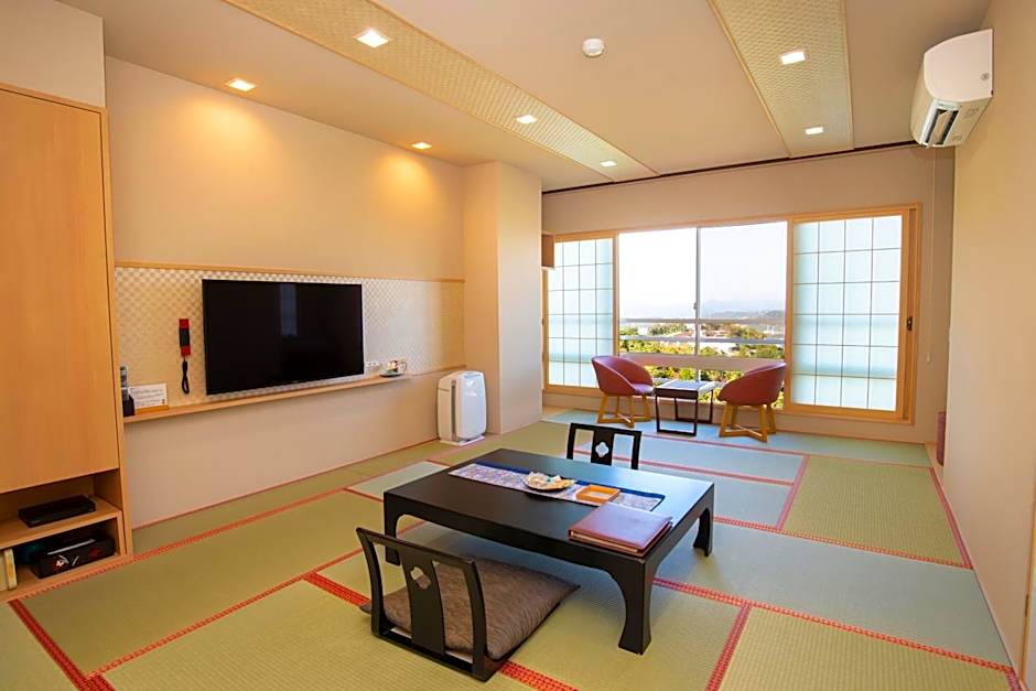 The quadruple room includes a private bathroom, well-fitted with a bath, a shower, a bidet, a hairdryer and slippers. This quadruple room is air-conditioned and features a seating area with a flat-screen TV, tatami, a dining area, a wardrobe, as well as a safe deposit box. The unit offers 4 futons.