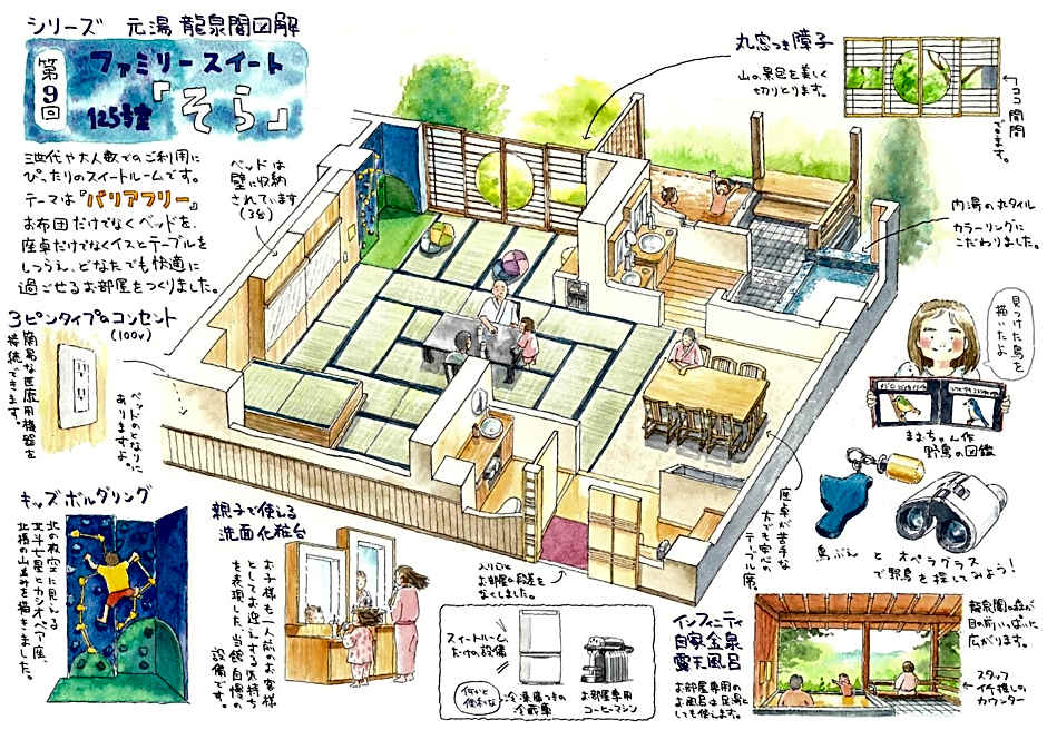 This suite features a private open-air bath. This spacious suite features 1 bedroom, a seating area and 1 bathroom with a bath and a shower. The air-conditioned suite features a flat-screen TV with streaming services, tatami, a tea and coffee maker, a dining area as well as mountain views. The unit has 6 futons.