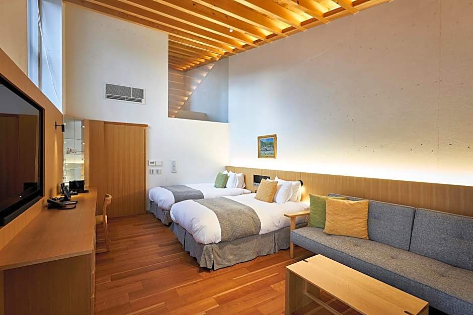 Begin mornings with a stroll through the garden and end the day with a drink at the bar, followed by a sunset from the terrace. The balcony-equipped spaces bring a sense of open-air calm, while the bathtub invites a soothing soak after adventures in Kōya.