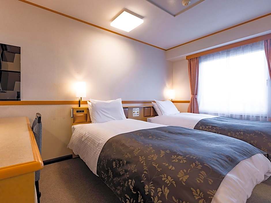 The twin room includes a private bathroom, well-fitted with a bath, a shower, a bidet, a hairdryer and slippers. This twin room is air-conditioned and features a flat-screen TV, an electric kettle, a carpeted floor and yukata. The unit offers 2 beds.