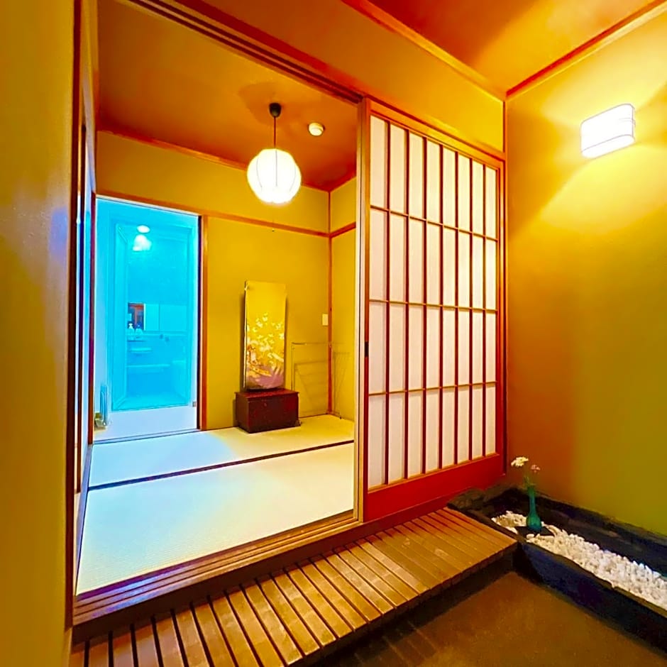 The hot tub is a top feature of this family room. The family room features air conditioning, tatami, a terrace with garden views as well as a private bathroom boasting a bath. The unit has 4 futons.