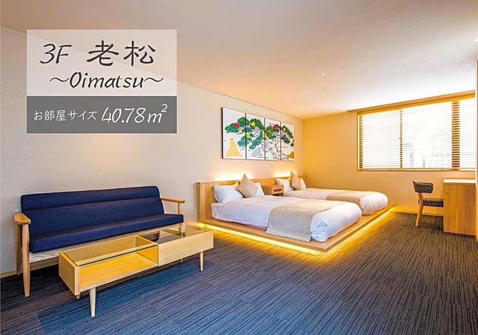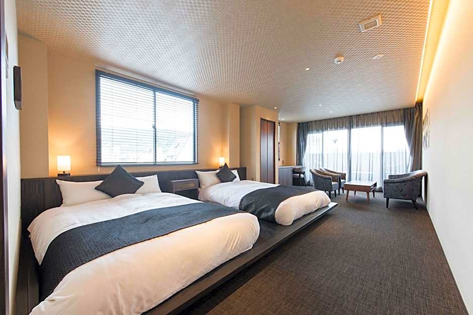 This family room's standout feature is the hot tub. The spacious family room offers air conditioning, tatami, as well as a private bathroom boasting a bath and a shower. The family room has carpeted floors, a seating area with a flat-screen TV, a private entrance, soundproof walls, as well as a safe deposit box. The unit has 2 beds and 3 futons.