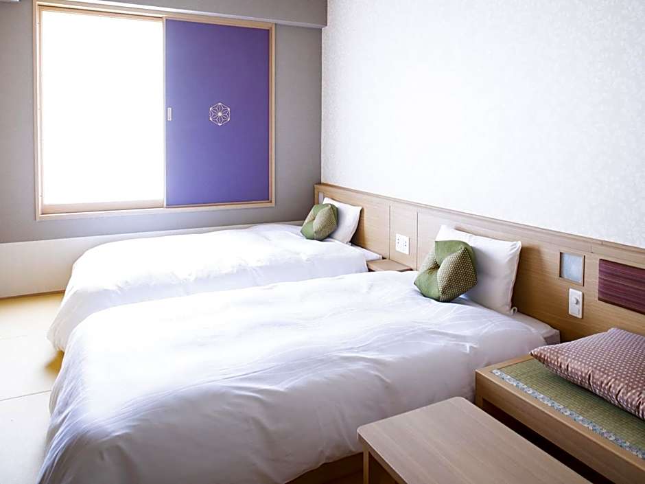 The twin room includes a shared bathroom, well-fitted with a shower, a bidet, a hairdryer and slippers. The air-conditioned twin room provides a flat-screen TV with satellite channels, tatami, soundproof walls and a safe deposit box. The unit offers 2 beds.