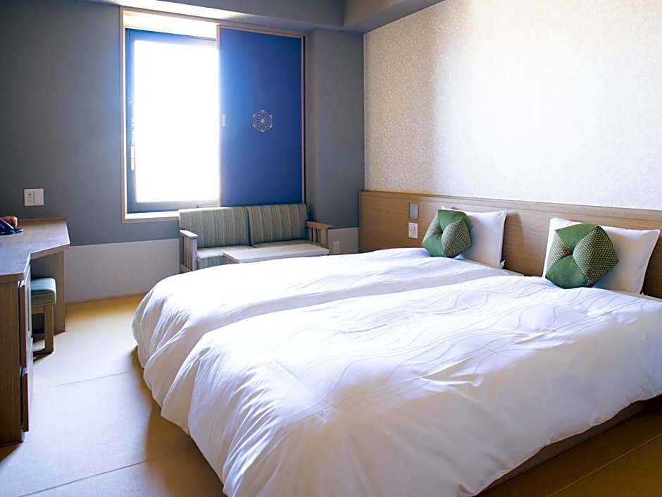 The twin room includes a shared bathroom, well-fitted with a shower, a bidet, a hairdryer and slippers. The twin room provides air conditioning, tatami, soundproof walls, a safe deposit box and a flat-screen TV with satellite channels. The unit offers 2 beds.