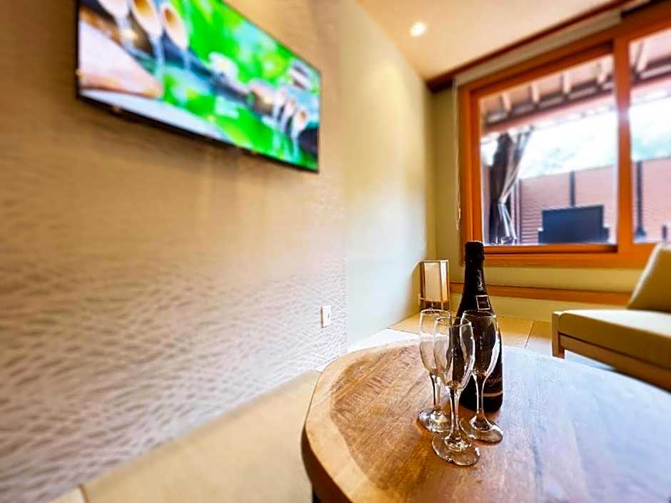 The private open-air bath is the standout feature of this twin room. The spacious twin room features air conditioning, a tea and coffee maker, as well as a private bathroom boasting a bath and a shower. The twin room offers a seating area, a sofa, parquet floors, heating, as well as a flat-screen TV. The unit has 2 beds.