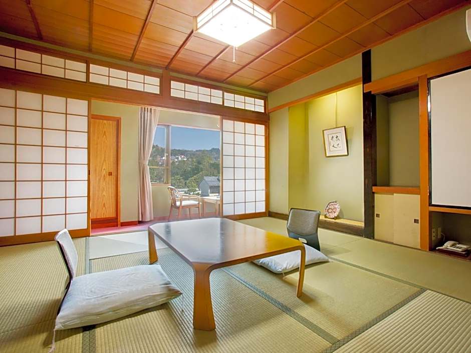 The quadruple room offers air conditioning, tatami, as well as a private bathroom boasting a bath and a shower. The quadruple room features a flat-screen TV, a seating area, a wardrobe, an electric kettle as well as mountain views. The unit has 4 futons.