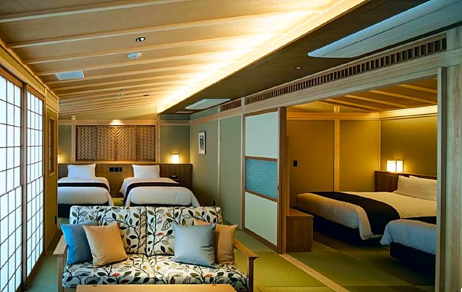 This spacious suite includes 1 living room, 2 separate bedrooms and 1 bathroom with a bath and free toiletries. The air-conditioned suite offers a flat-screen TV with streaming services, tatami, soundproof walls, a tea and coffee maker as well as city views. The unit has 2 beds and 2 futons.