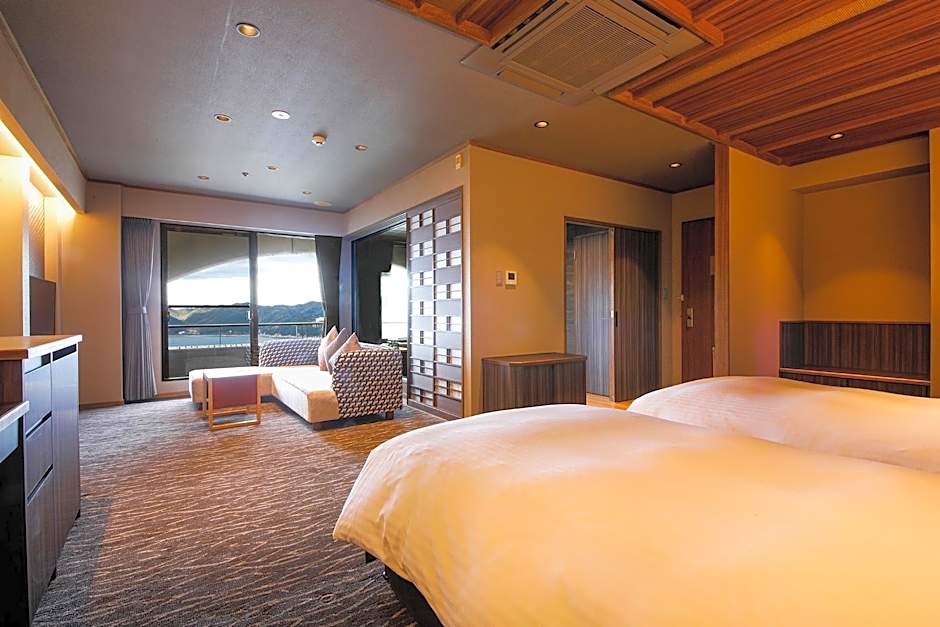 Two on-site restaurants—ダイニング 花桐 and 旬房 海楽—offer French and Japanese cuisines in a range of atmospheres, from family-friendly and traditional to modern and romantic.