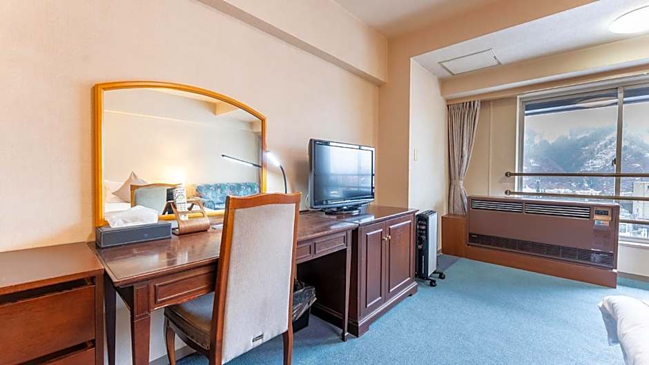 Key features include skiing and an on-site restaurant, plus free private parking and free Wi-Fi. Spa and hot spring bath access is complimentary, along with air conditioning and a sauna. The property also offers a kid-friendly buffet, on-site ski rental, 24-hour front desk service, non-smoking rooms, an elevator, a bidet, free toiletries, kids' meals, and views from upper floors accessible by elevator.