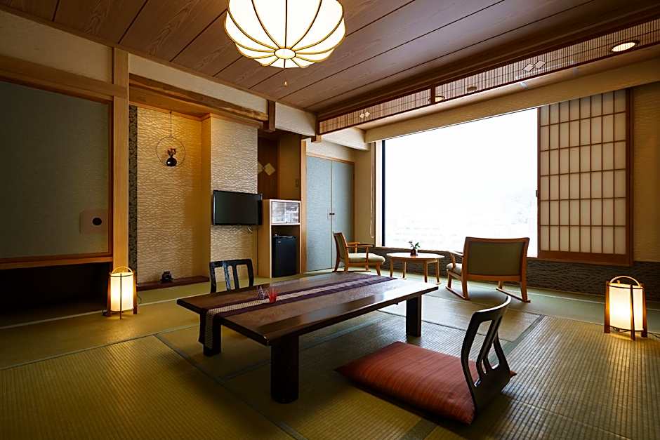 This suite features a hot tub and a private open-air bath. This spacious suite features 1 bedroom, a seating area and 1 bathroom with a bath and a shower. The air-conditioned suite features a flat-screen TV, tatami, a tea and coffee maker, executive lounge access as well as river views. The unit has 5 futons.