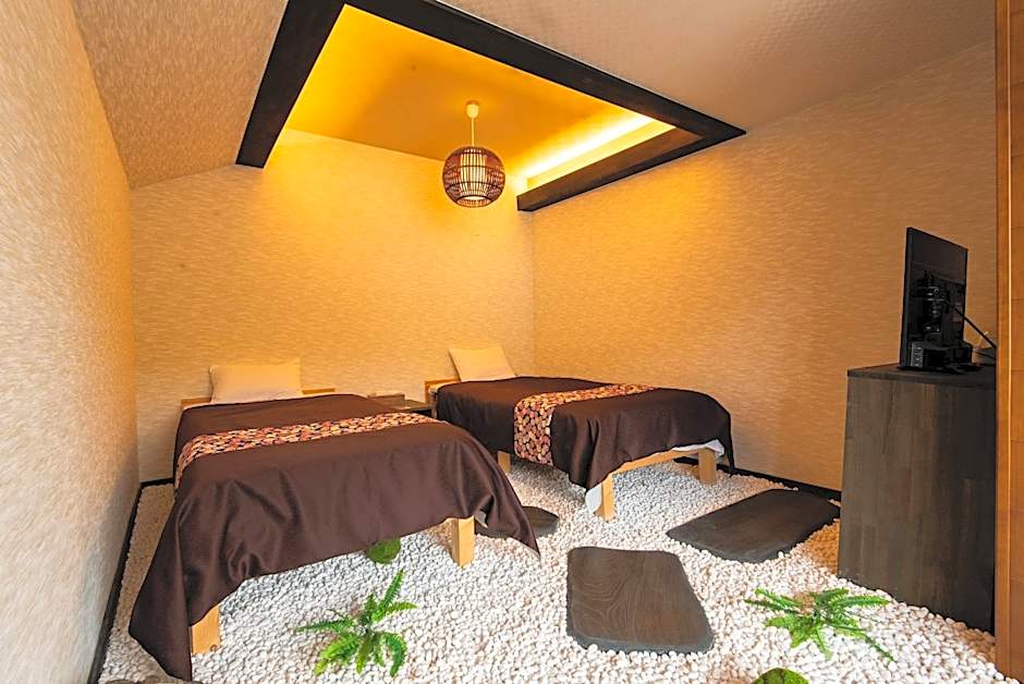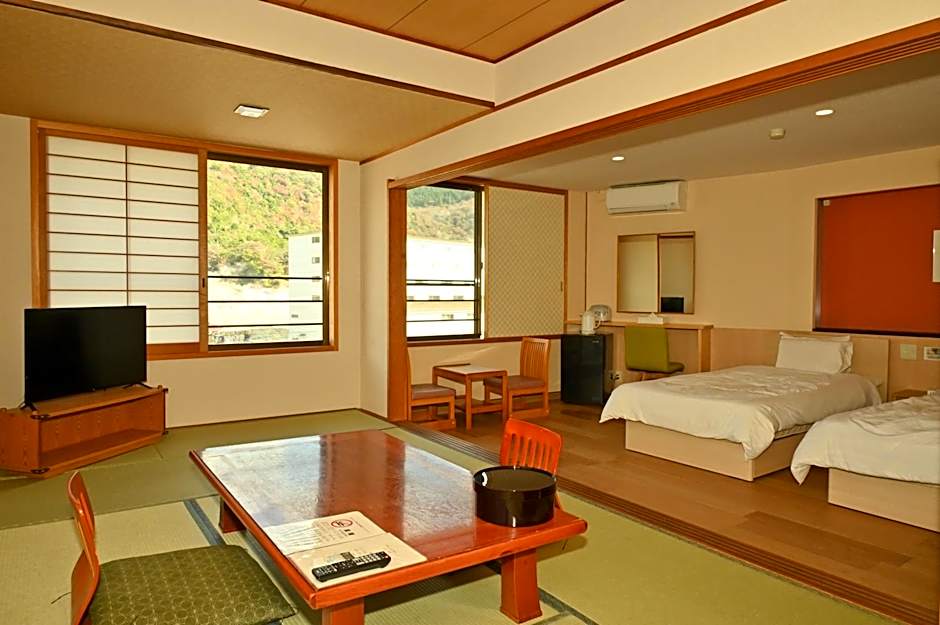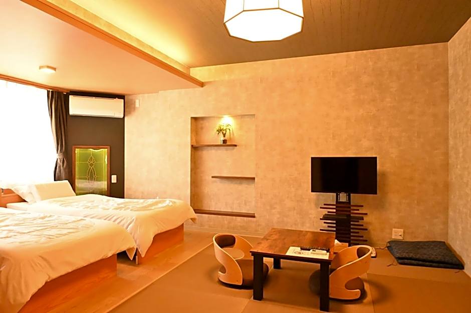 The twin room offers air conditioning, tatami, as well as a private bathroom boasting a walk-in shower and a bidet. The twin room features soundproof walls, a tea and coffee maker, a seating area, a flat-screen TV, as well as mountain views. The unit has 2 beds.