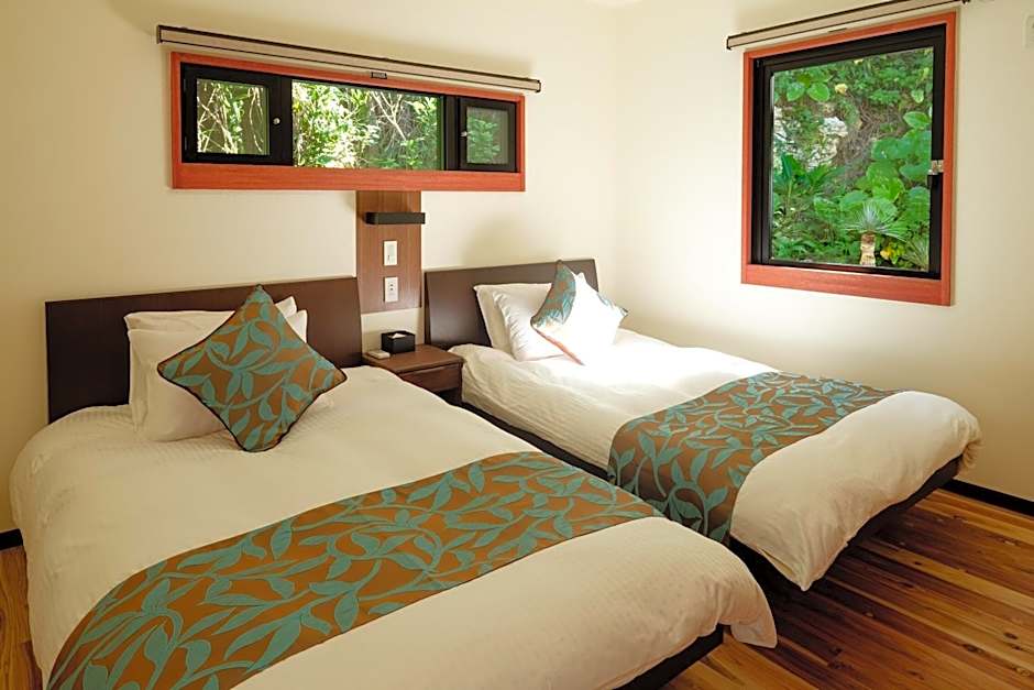 The Villa Sea View room at Kaiza is the epitome of tranquility and luxury. Picture yourself waking up to stunning views of the sea as you sip your morning coffee. This elegant room accommodates two adults and one child, making it ideal for a romantic getaway or a small family vacation in Naha. The warm and inviting atmosphere of the room, coupled with the serene surroundings, guarantees a truly memorable stay at Kaiza.