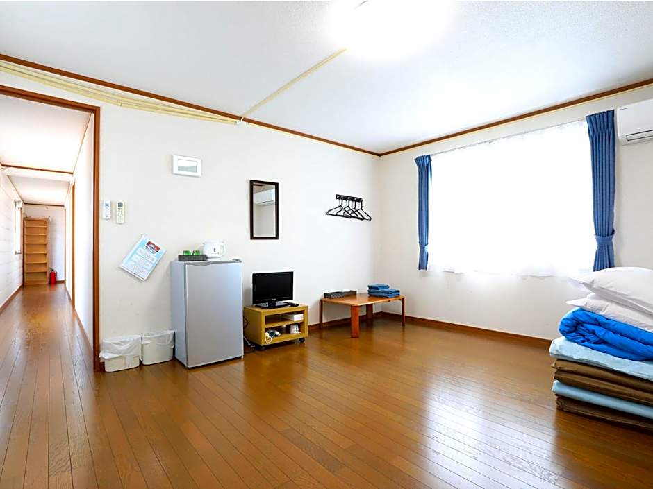 The quadruple room provides air conditioning and tatami, as well as a shared bathroom featuring a hairdryer. This quadruple room offers an electric kettle and a flat-screen TV. The unit offers 4 futons.