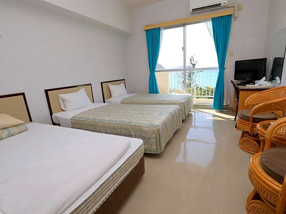 The triple room features air conditioning, tatami, a balcony with sea views as well as a private bathroom boasting a bath. The unit has 3 futons.