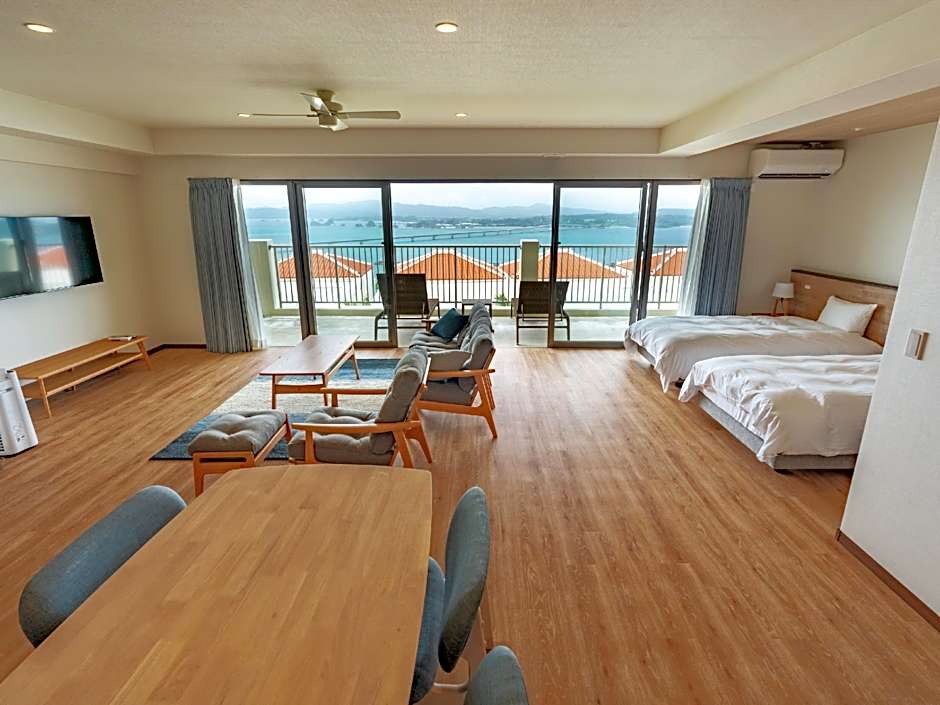 This spacious suite is consisted of of 1 living room, 2 separate bedrooms and 1 bathroom with a bath and free toiletries. The well-fitted kitchen features a refrigerator, kitchenware, a microwave and an electric kettle. The air-conditioned suite offers a flat-screen TV with streaming services, a washing machine, tatami, a wardrobe as well as sea views. The unit offers 4 beds and 4 futons.