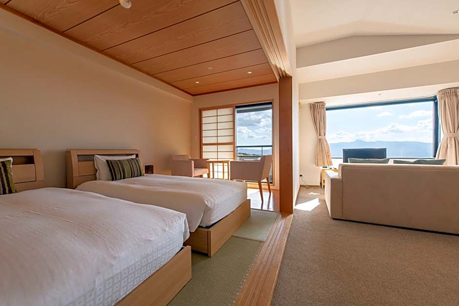 Spacious room in neutral colors, featuring mountain views and a balcony. It comes with a comfortable living area, a dining area and a kitchenette. Amenities include a flat-screen TV and a tea maker. In addition, a Japanese-style seating area offers a tatami (woven mat) floor, a low table and seating cushions.