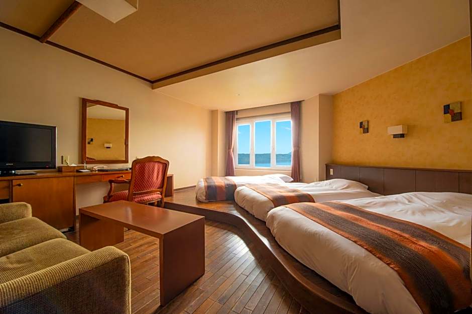 Featuring what's considered one of Hokkaido's three most beautiful views, this room overlooks Lake Toya-ko and Mount Youtei-zan. Fireworks can be admired in the sky every night from May until October. The room is furnished with a seating area, a TV and a shower booth. A small fridge and free green tea are provided.