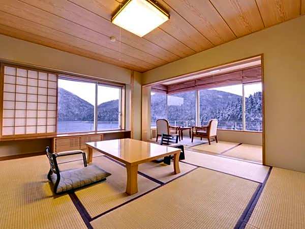 The family room includes a private bathroom, well-fitted with a bath, a shower, a bidet, a hairdryer and slippers. The air-conditioned family room features a flat-screen TV, tatami, a safe deposit box, yukata as well as lake views. The unit has 5 futons.