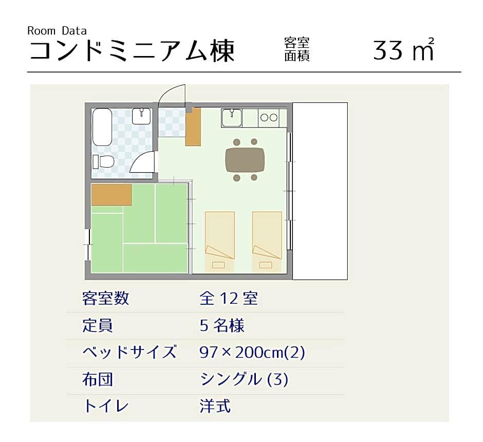 Features Western-style beds and a Japanese seating area with tatami (woven-straw) flooring.