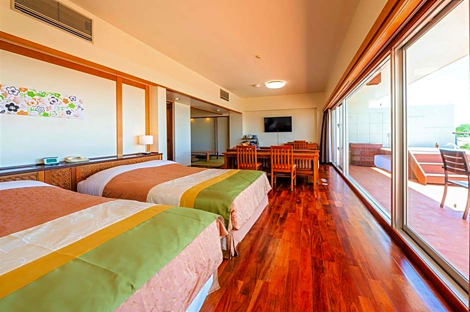 For those seeking a refreshing dip, offers not one but two options for swimming. The indoor pool is available year-round, perfect for a relaxing swim regardless of the weather outside. Additionally, the outdoor pool provides a seasonal oasis where guests can soak up the sun and enjoy the tropical surroundings. Whether you prefer a leisurely swim indoors or basking in the warm Okinawan sun by the outdoor pool, both options cater to your aquatic desires.