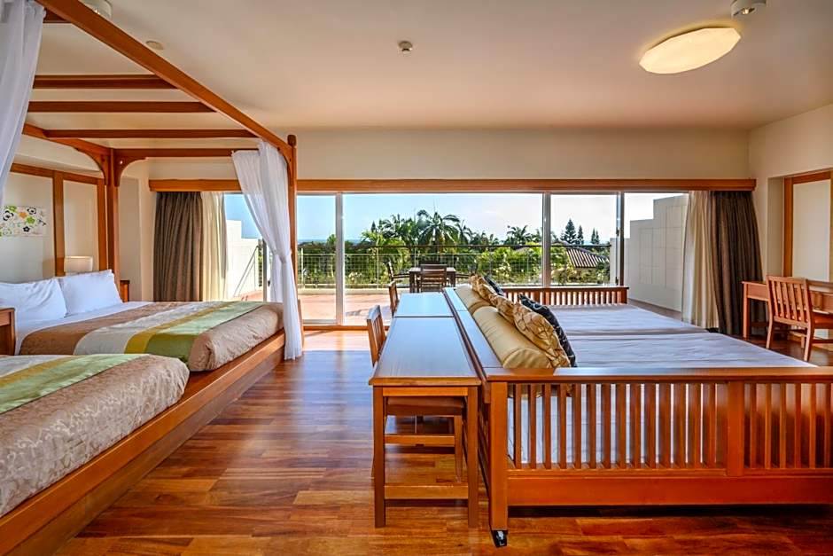 The spacious family room provides air conditioning, an electric kettle, as well as a private bathroom featuring a bath and a shower. This family room offers a sofa, a flat-screen TV and a balcony. The unit offers 3 beds and 3 futons.