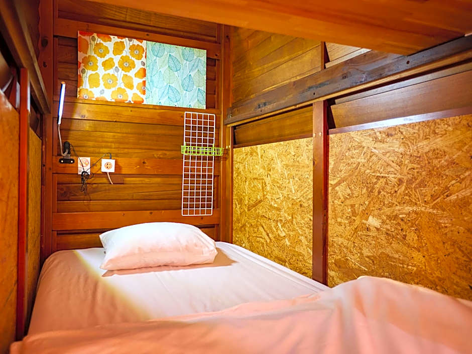 This bed in dormitory features air conditioning. Each single bed is a private room-type space including private curtain. Bathroom and toilet is shared.