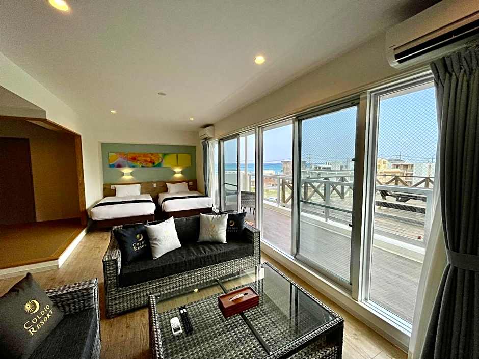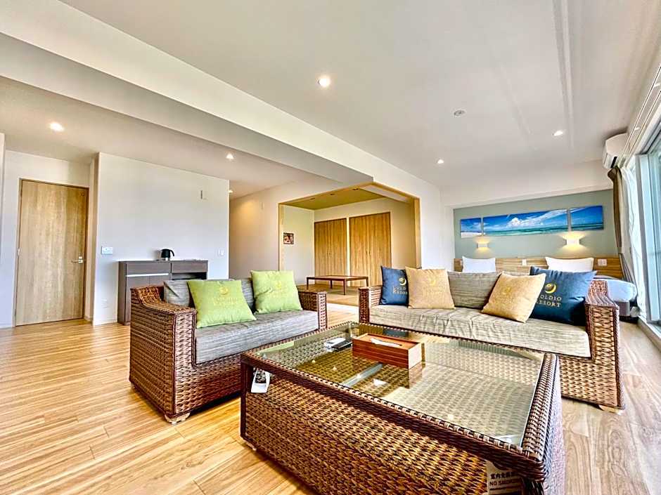 This spacious suite consists of 1 living room, 2 separate bedrooms and 2 bathrooms with a bath and free toiletries. In the well-equipped kitchen, guests will find a stovetop, a refrigerator, kitchenware and a microwave. The air-conditioned suite provides a flat-screen TV, a washing machine, tatami, a dining area as well as sea views. The unit offers 4 beds and 4 futons.