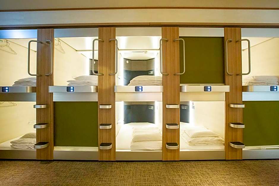 A playful blend of cabin and capsule concepts, this Osaka address invites travelers to enjoy a straightforward, comfy stay.