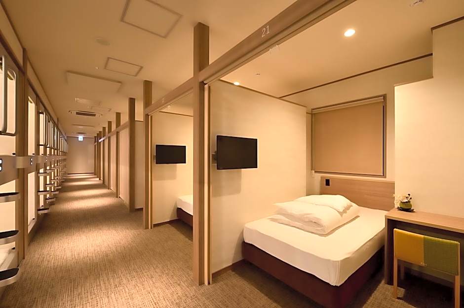 Located in Osaka’s lively Namba district, this 3-star, adults-only option blends cabin and capsule concepts for a straightforward, comfy stay, complemented by a 24-hour front desk, non-smoking rooms, free Wifi, and easy access to the neighborhood’s energy.