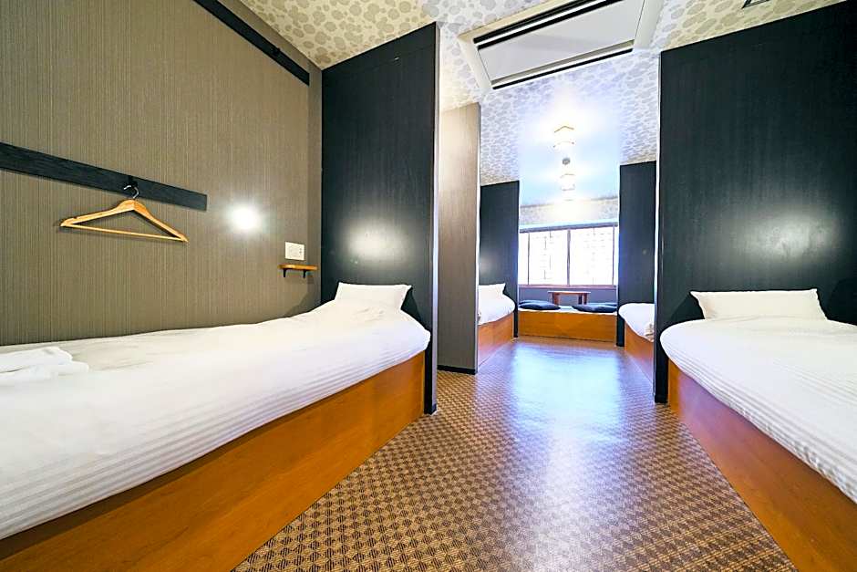 The quadruple room offers air conditioning, tatami, as well as a private bathroom featuring a shower and a bidet. Rooms on the upper floors are reachable by elevator. The unit offers 4 futons.