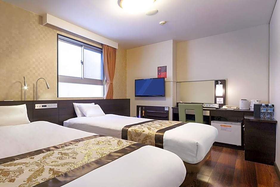 The twin room includes a private bathroom, well-fitted with a bath, a shower, a bidet, a hairdryer and slippers. This twin room is air-conditioned and has a flat-screen TV, a safe deposit box, a carpeted floor and yukata. The unit has 2 beds.