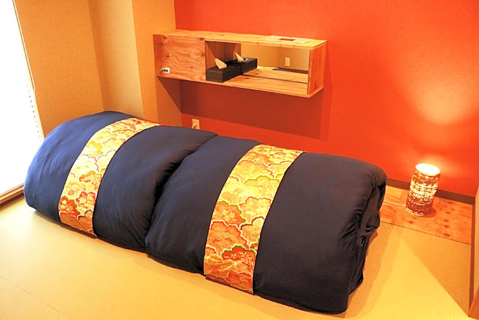 The twin room provides air conditioning, tatami, as well as a shared bathroom featuring a shower and a hairdryer. Rooms on the upper floors are reachable by elevator. The unit offers 2 futons.