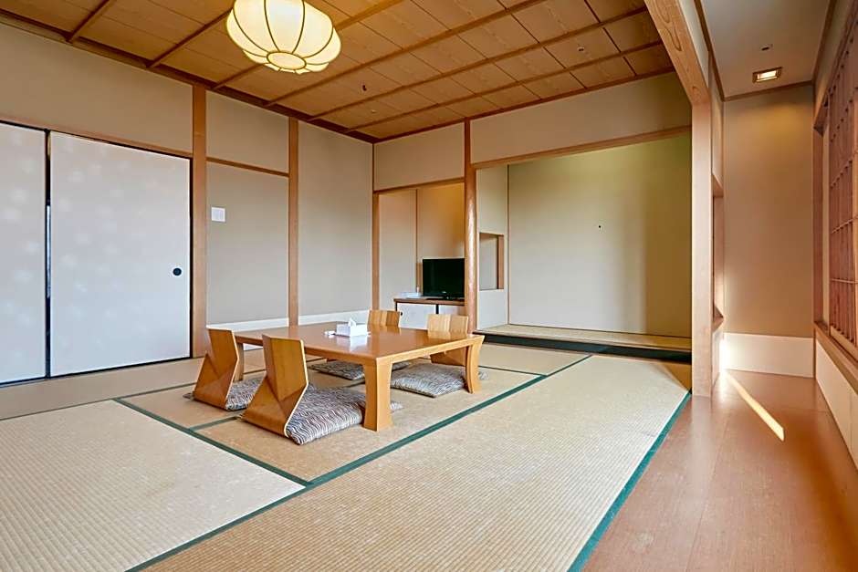 The family room offers air conditioning, tatami, a balcony with sea views as well as a private bathroom boasting a bath. The unit has 4 futons.