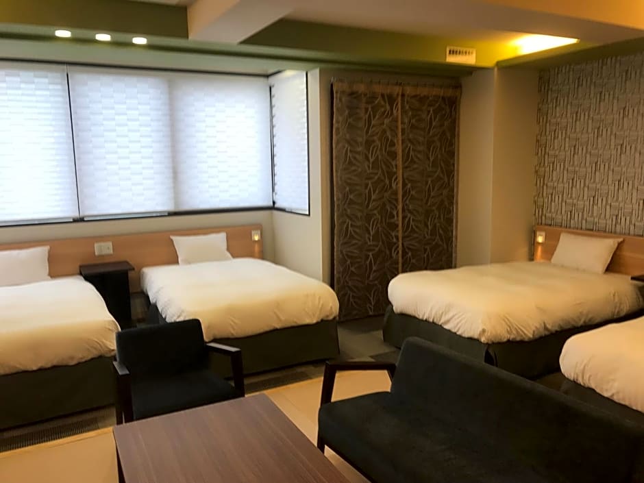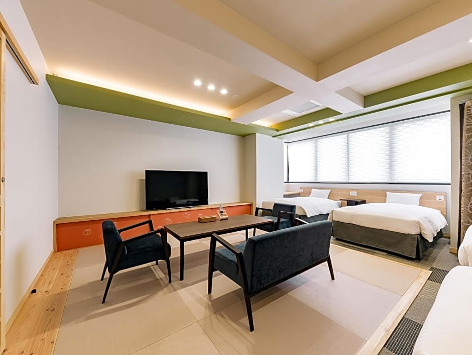 The family room includes a private bathroom, well-fitted with a bath, a shower, a bidet, a hairdryer and slippers. The kitchenette is fitted with a stovetop, a refrigerator and a microwave. The spacious family room offers air conditioning, tatami, a coffee machine, a dining area and a flat-screen TV with streaming services. The unit offers 4 beds and 3 futons.
