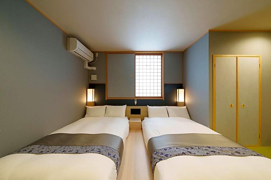 This twin room features air conditioning and seating area. The room has a tatami (woven-straw) floor with an private bathroom and toilet. The bed is 41 in wide, 77 in long with a Serta coil spring mattress.