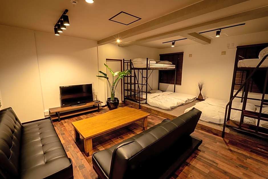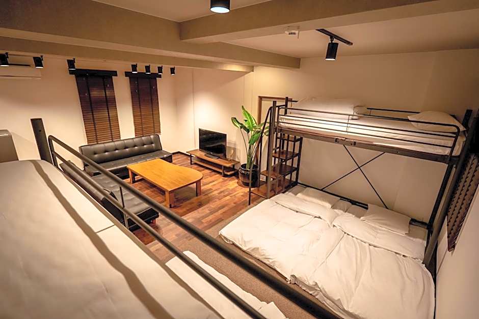 The spacious family room provides air conditioning, a washing machine, as well as a private bathroom featuring a bath and a shower. Meals can be prepared in the kitchen, which is equipped with a stovetop, a refrigerator, kitchenware and an oven. The family room offers tatami, a private entrance, a dining area, a wardrobe, as well as a flat-screen TV. The unit offers 2 beds and 5 futons.