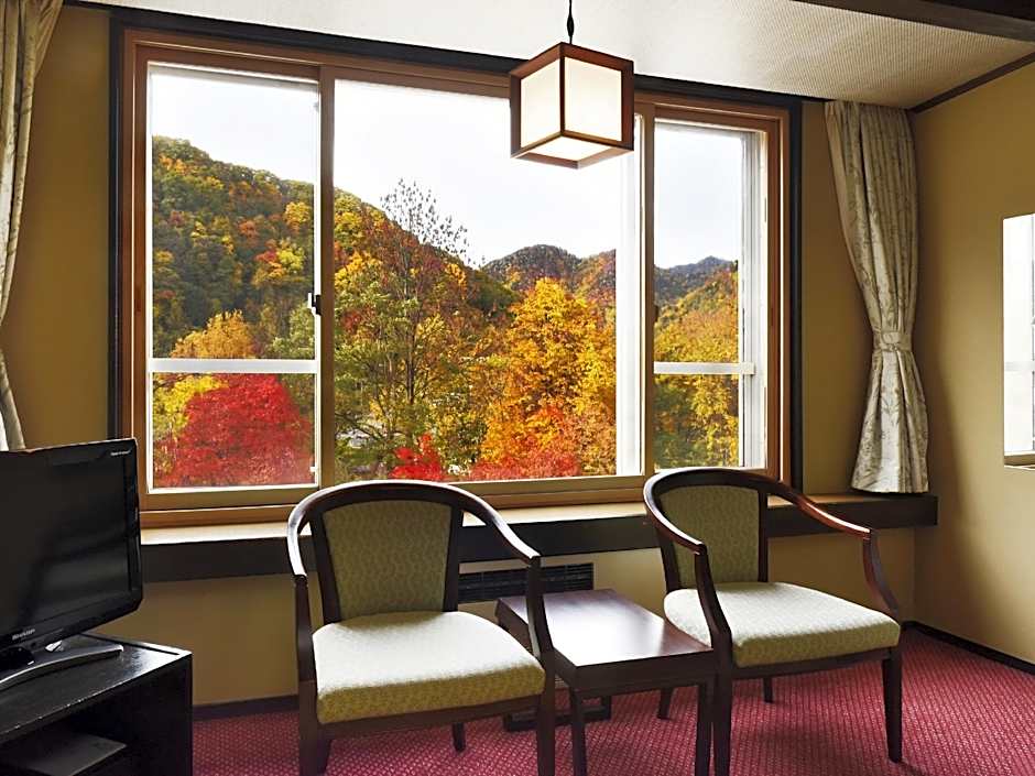 In the Jozankei onsen area, this 3-star retreat blends mountain calm with traditional hospitality. On-site dining is 鹿の間, a traditional ambiance restaurant serving Japanese and Local cuisines, inviting a comforting meal after a day spent exploring the scenic surroundings.