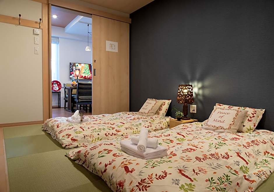 Miidokoro House Hotel offers three types of rooms: Superior Apartments, Deluxe Apartments, and Two-Bedroom Apartments. All the apartments are spacious, with a size of 1184 sqft for the Superior and Deluxe Apartments, and 592 sqft for the Two-Bedroom Apartment. Smoking is not allowed in any of the rooms. The Superior Apartment can accommodate up to 11 adults with 5 Futon Mats and 6 Twin beds, the Deluxe Apartment can accommodate up to 9 adults with 3 Futon Mats and 6 Twin beds, and the Two-Bedroom Apartment can accommodate up to 6 adults with 6 Futon Mats.