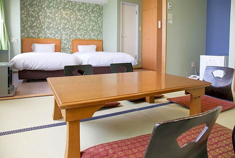 The hotel offers a variety of room types including single, double, twin, triple, and quadruple rooms. Some of the rooms have a shared bathroom, while others have a private bathroom. Smoking is not allowed in most of the rooms. The bed sizes vary, with options including twin beds, double beds, and futon mats in Japanese-style rooms.