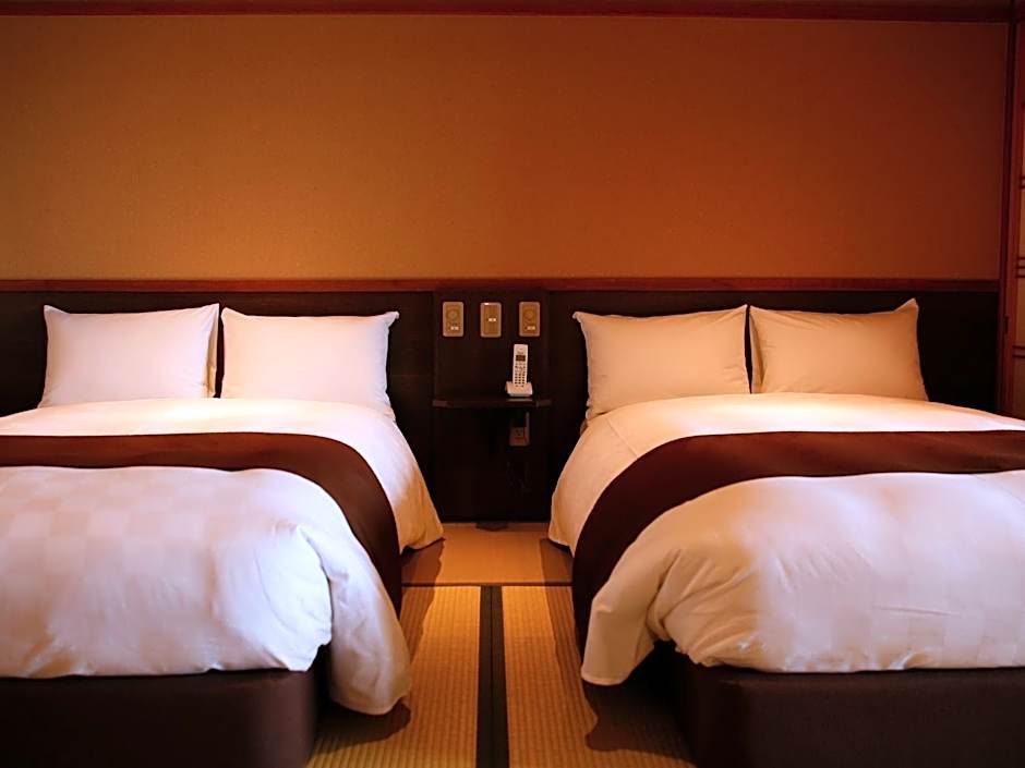Providing free toiletries, this family room includes a private bathroom with a shower, a hairdryer and slippers. This family room is air-conditioned and features a seating area with a flat-screen TV, tatami, a mini-bar, a tea and coffee maker, as well as a wardrobe. The unit offers 3 futons.