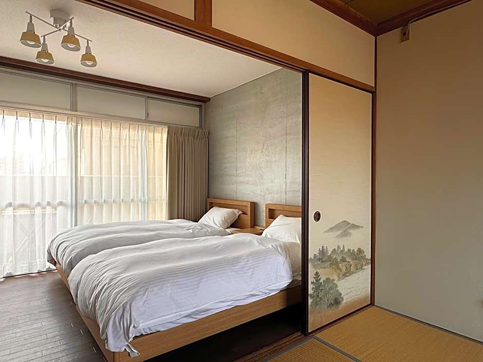The family room offers air conditioning, tatami, as well as an external private bathroom boasting a bath and a shower. This family room has a dressing room, heating, a TV and a balcony. The unit has 2 beds and 3 futons.
